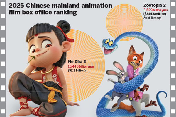 As of Tuesday, the box office revenue of animated movies in China has reached 25.06 billion yuan ($3.56 billion), nearly 270 percent higher than in 2024.