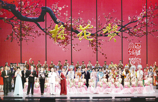 “梅花赞——中国戏剧梅花奖创办30周年汇报演出”结束后,全体演员合影 孟祥宁 摄