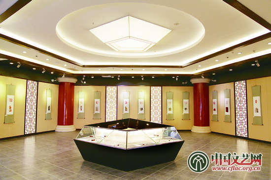 本次展览不仅在篆刻展品上精益求精,在展厅布置上也匠心独运,延续了中国艺术研究院中国篆刻艺术院此前在中华世纪坛、国家大剧院举办的“金石永寿——中国寿山石篆刻艺术展”和在恭王府举办的“江山多娇——庆祝中华人民共和国成立六十周年篆刻艺术精品展”的展陈风格,继续推进篆刻艺术展展陈方式的创新,屏风、竹帘、百宝阁、茶道、文房用具等大量中国传统元素融入展厅设计当中,与古朴的篆刻作品相映成趣,印章图案的过门石等细节处理更体现出主办方的精心着力打造,浓郁的书香氛围不禁令人有把玩印章、品味香茗的冲动。据骆芃芃介绍,中国(广西)篆刻艺术馆的落成为篆刻艺术的展示提供了更好的平台,它绝非仅是把作品挂在墙上的展示空间,更是专门展示篆刻艺术的特色化功能性场所。