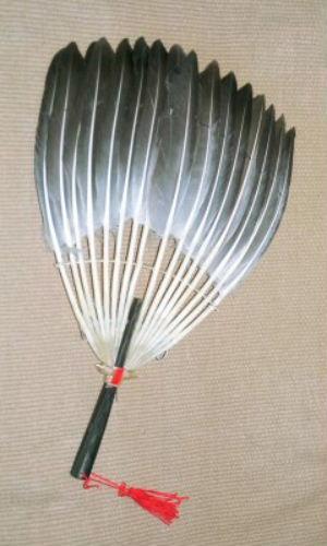 所用之羽不同,品类高下殊异。常见者莫过于鹅毛扇和雕翎扇。鹅毛扇以白鹅翎羽制成,也有呈灰色者。形状有圆形、腰圆形、鸡心形、佛手形等。每羽长不足八九寸,一般用羽十至四十不等。雕翎扇较为高档,一般羽长尺余,每羽宽一二寸,以十来羽便可辑而成扇。羽色或纯黑,或褐色。汉末盛行于江东,晋陆机傅咸有《羽扇赋》,传蜀诸葛亮、晋顾荣皆有捉白羽扇指麾众军之事。其初扇羽用十,扇柄刻木象鸟骨,东晋后羽减为八,改为长柄。见晋陆机《陆士衡集·羽扇赋》、《世说新语·言语》、《晋书·五行志》上。据清·王廷鼎《杖扇新录》记载:“雕翎扇:咸同以来,都下盛行雕扇,王公大臣皆用之。一羽长尺外,阔一二寸。扇形长方,一扇列九羽为率,价须十金。若七羽、六羽者尤贵。羽出北口,赭质而白章,亦有黑白各半,又有上下全黑、中间寸许白者,名‘玉带’,值数十金,甚有至百金外者,柄用象牙。”