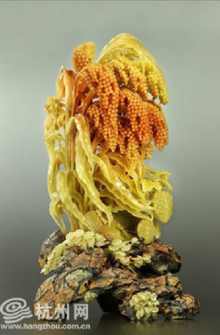 周金甫作品:青田石雕《丰收》