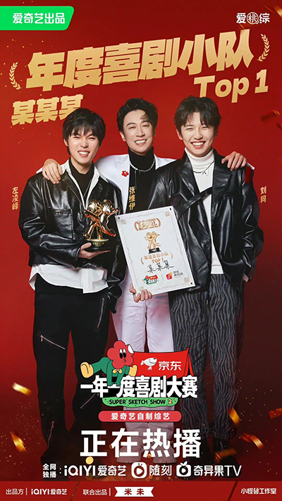 12月17日晚,喜剧类综艺节目《一年一度喜剧大赛2》总决赛落下帷幕,由张维伊、左凌峰、刘同三人组成的“某某某”组合夺得“年度喜剧小队”第一名。