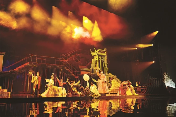 “我们所探索的舞台剧,要融合音乐剧和舞剧的优点,同时保持话剧的行动性语言和故事行动力;强调现代剧场理念中‘行动’是声音、舞台道具、灯光和美术的流动与融合,在与演员的表演共同编织出的舞台表达方案中形成全新的剧场行动力。”王可然说。因此,“创新舞台剧”成了创作团队贯穿全程的艺术追求。比如,打破镜框式舞台的局限,尝试使用大型舞美装置与奇幻光影特效,将垂虹桥“长虹卧波”的壮阔、蚕桑工坊的温润具象化;融合多媒体技术,设置“戏中游、游中悟”的“剧中人”观众席,邀请部分观众同台沉浸式“入戏”。整部作品立足于吴江,让一座城不再是地图上的坐标,一同纳入创意创作,使之成为有故事、有性格的“角色”。王可然表示:“希望观众不仅能看到江南的诗意与壮阔,更能读懂自己内心的追求与坚守,在古今交汇的‘欢聚’中,找到与中华文明深切的情感联结。”