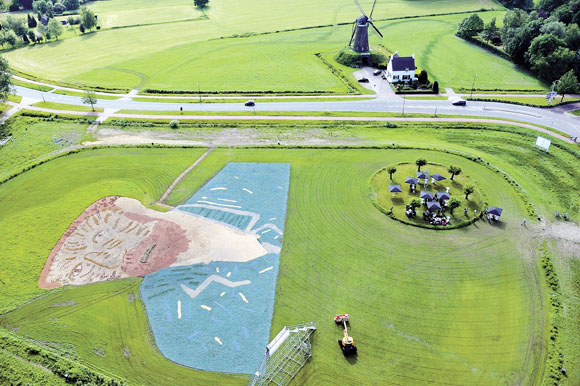 这张5月30日俯拍的照片显示的是荷兰尼厄嫩一处田野上再现的荷兰画家梵高的自画像(68米×81米),由碎木屑和各色植物拼缀而成。