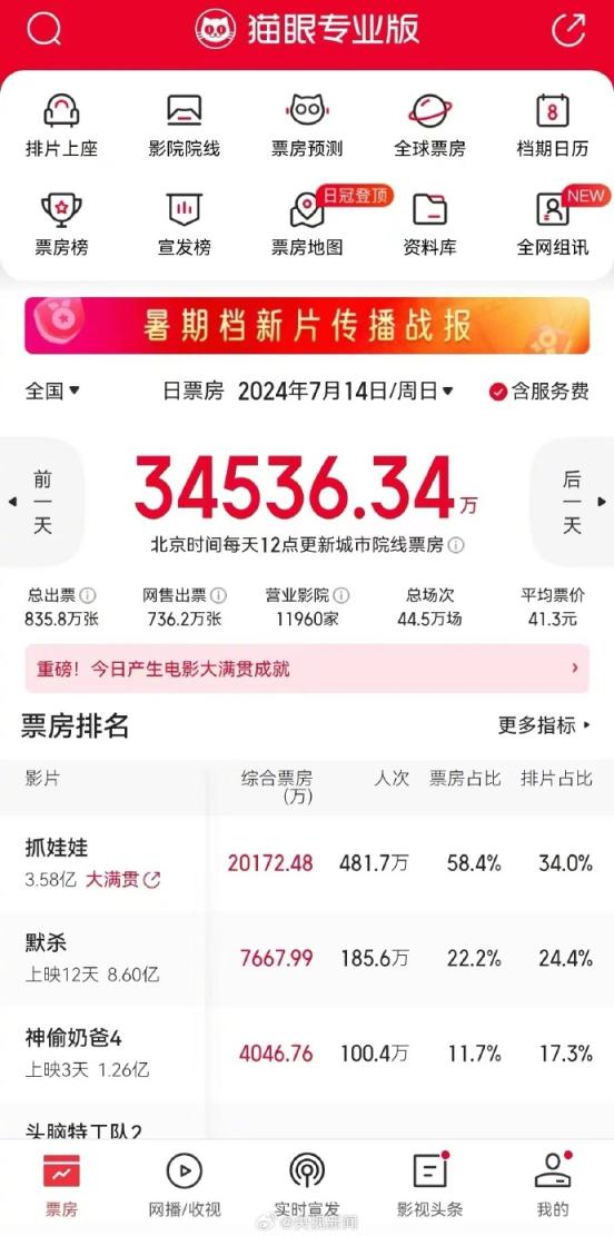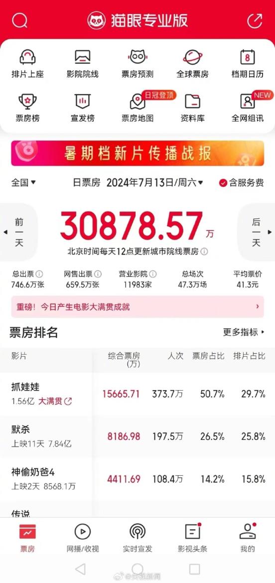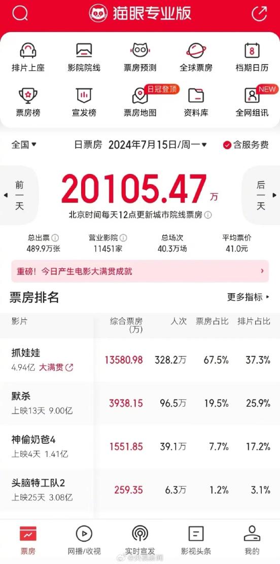 暑期档也太卷了!7月13日至15日,今年暑期档电影票房已连续三天突破2亿元,总票房已超40亿元!被网友称西虹市版“楚门的世界”的《抓娃娃》点映及预售票房破5亿;《落凡尘》《神偷奶爸4》《机器人之梦》等还带来了夏日动漫狂欢。