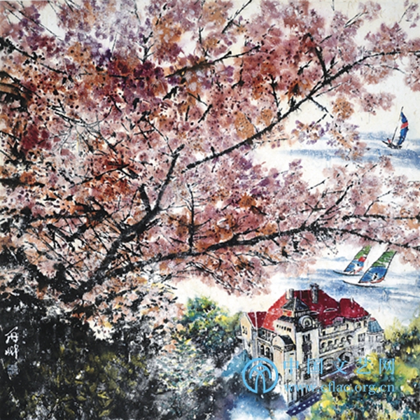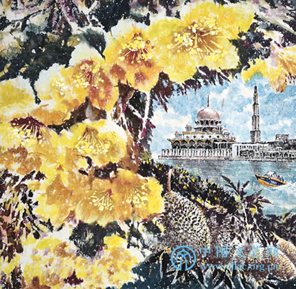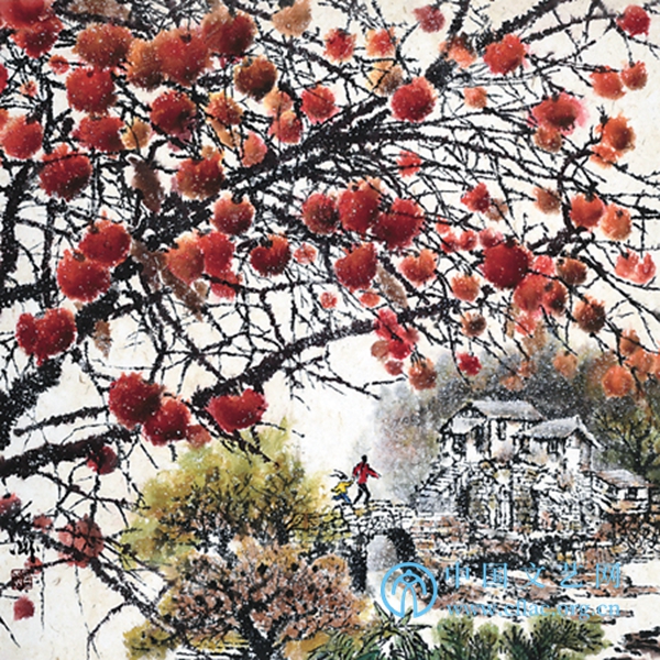 《城堡春意》是一幅国际题材的作品。为了拓展国际市场,他多次去欧洲考察。他以企业家的心态观察国外的市场变化,也以画家的心境,去感受那里的一草一木。他笔下的欧洲城堡,是一栋古建筑,是一座艺术宫殿,建筑的结构与细节,会让他想到自己企业的产品和自己创业的历程。多重视角、多种感受,集于对城堡的一瞥。因此,他把视觉对象艺术化时,感情充沛、体验独特。 《锦绣家园》则是一组明确表达画家生活印象的作品。这是他对高密创业生活的回味,对超越自身局限的概括。无数个寒暑,无论春夏秋冬,他兢兢业业在工作岗位上研究产品和市场。他知道改革开放的机遇千载难逢,他与同事尽最大的可能抓住这个机会,让企业成为推动社会生产力的动能。最终他们成功了,一家名不见经传的乡镇企业,在他们多年的努力奋斗下,成为上市公司,成为资本市场上的一名骄子。“锦绣家园”来之不易,因此,他创作了《锦绣家园》系列,向那个时代致敬。在其中一幅作品中,他画了一棵果实累累的柿子树,那一颗颗饱满的红色果实,何尝不是自己创业的成果。我在这幅构图简练、色调温馨的作品前停留许久,突然想起古人的两句诗:“红豆晓云书柿叶,碧螺春雨读梅花。 ”不再在市场打拼的郭丙州,该有这样的心境与艺术拥抱了。