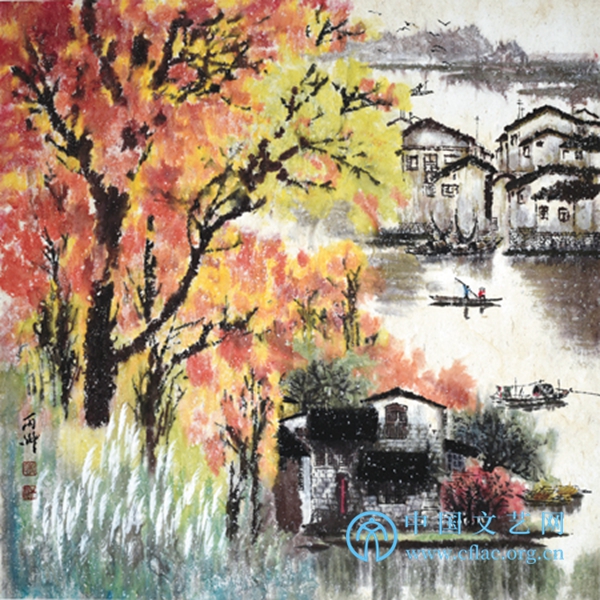 郭丙州描绘的大自然、刻画的新世界,我有幸一一拜观了。我看到他的第一幅画,记忆的大门敞开了,想象的翅膀振动了,在他以画笔构筑的艺术世界里,我看到了艺术之美,更看到了其璀璨的生命震撼。他的画,就是他自己的经历,他所描绘的大千世界,就是自己的过往。他不是在当代竞技美术体制下脱颖而出的画家,他更像一个隐逸于市的当代文人,将绘画者自身的气质与品格充分体现出来了。这是郭丙州美术创作的重要特点。并且,由于设计工作的性质,为适应市场不同文化层次消费群体的审美需求,他不断丰富自己的艺术修养,多年来在不同的艺术领域锤炼自己,其创作的触角探索至摄影、油画、水粉、水彩、中国画等各艺术门类。融合多种艺术形式于一体,郭丙州形成了自己独特的中国画语言特色,在继承传统中国画的基础上,色彩斑斓沉稳,画风自然纯朴。