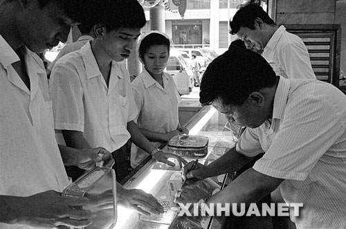 这是20世纪90年代初,广州一饼家在中秋前夕设点为顾客代办月饼邮寄业务,为各地的华人华侨传递浓浓的乡情。这位章先生受在上海哥哥的委托,特地买一盒正宗的粤式月饼,寄给台北市的亲人(资料照片)。 新华社发