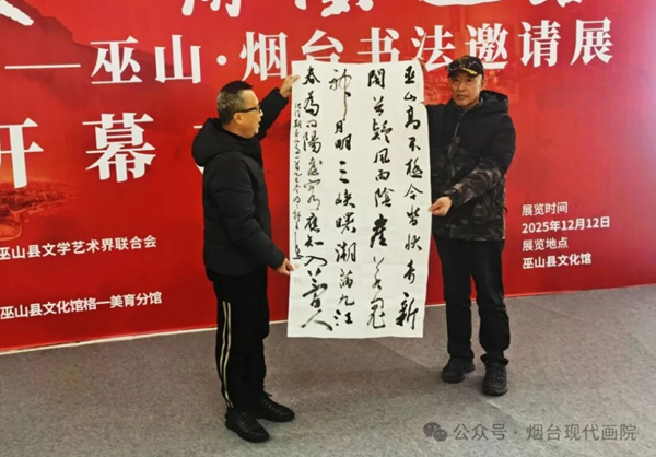 12月12日,由烟台市民政局、烟台市文学艺术界联合会、巫山县民政局和巫山县文学艺术界联合会主办,巫山县文化馆和烟台现代画院承办的“民政为民 翰墨迎春——巫山·烟台书法邀请展”在巫山县文化馆开幕。