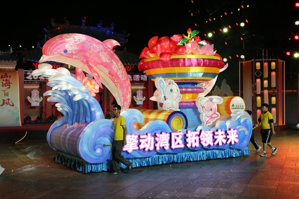 20辆主题彩车贯穿巡游全程,头牌彩车《山海同风·悦叹秋色》以“座地灯”手工扎作工艺为核心,以荷花造型象征城市繁荣;《文融天下·美美与共》彩车通过陆上丝路骆驼、海上丝路帆船与现代高铁造型,展现佛山在“一带一路”中的枢纽地位;大湾区协同主题彩车《擎动湾区·拓领未来》以中华白海豚群托起代表粤港澳的花朵,呼应广东、香港、澳门首次联合承办第十五届全运会的盛事;新疆伽师县彩车满载新梅、伽师瓜,与佛山醒狮造型融合,寓意“万里援疆结硕果”;云浮彩车以亿航无人机、氢能花等元素,展现佛云产业协作新图景。
