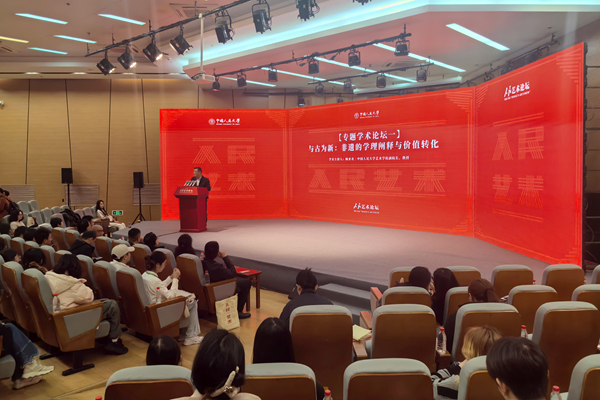 当日,“与古为新:非遗的学理阐释与价值转化”“焕彩出新:非遗的跨界对话与融合创新”两场专题学术论坛同期举办。来自国内非遗研究领域的知名学者、国家级非遗代表性传承人、知名艺术家、文化政策研究专家以及相关领域的实践者围绕“非遗保护的理论前沿与实践探索”“传统工艺的当代转化与设计创新”“高校在非遗传承中的使命与担当”“数字化时代非遗的传播与教育”等关键议题展开深入而热烈的研讨。专家学者们一致认为,非遗是中华民族的文化瑰宝和智慧结晶,承载着民族的历史记忆与文化基因。在新时代背景下,非遗的保护传承工作已从单纯的“抢救性保存”向“创造性转化、创新性发展”纵深推进。论坛强调了“匠心”精神在非遗传承中的核心地位,同时呼吁要积极探索非遗与当代审美、现代科技、市场需求相结合的创新路径,使其更好地融入现代生活,绽放出更加迷人的光彩。与会者还深入探讨了高校在非遗学科体系建设、人才培养、学术研究和社会服务方面应发挥的引领作用。
