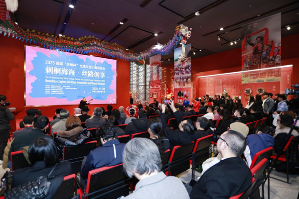 11月28日,2025首届“泉州杯”世界文化遗产文创大赛发布会暨启动仪式在中国非物质文化遗产馆举办。大赛由福建省文化和旅游厅、泉州市人民政府指导,泉州市文化广电和旅游局主办,福建省泉州海外交通史博物馆承办。活动以中国非物质文化遗产馆的“气象万千——中国非遗保护实践主题展”为场景,将发布内容与实物展品、文化场景深度融合,构建“看展+发布”的创新模式,推动非遗的活态传播。