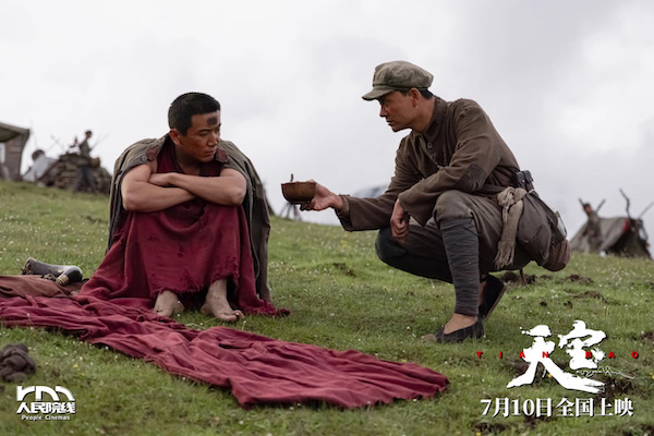 影片中,还重点叙述了民族、宗教与革命者的团结合作过程。如藏女央珍舍身捍卫红军、僧人面对善恶所做出的正义抉择等情节,这并非强调宗教理念本身,而是表现出民族、宗教在关键历史节点对正义与真理所做出的正确选择。藏区的民族与宗教所形成的这些精神共识,成为天宝信仰转变的感情后盾,而他也正是在这个过程中,从“小我”走向了“大我”,完成其服务于民族觉醒的精神蜕变。影片借此传达出更深层的哲学思考,从宗教信仰到革命信念的跃迁,应不止于心灵的安顿与自我慰藉,更应是一种对时代使命与民族大义的勇敢承担。天宝的成长,反映出他正是从个人修为走向家国担当的思想升华过程。