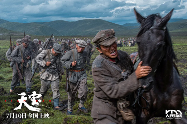 影片通过其个体命运,折射红军长征的艰苦卓绝和民族团结的家国史诗,给当代观众,特别是青年观众心灵深处激荡起对红色历史的深沉回响。电影以主人公天宝在大的时代背景下,个人的成长和蜕变为叙事主线,打破了宏大历史叙事的隔膜,在个体生命史诗的维度上,以共情、共鸣、共同的面向构筑起一座连通历史烽烟与时代青春的桥梁,共写了一首伟大的青春之歌。