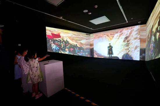 参观展览的小朋友体验数字化互动