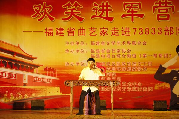 据悉,省曲协精心组织“欢笑进军营”活动,暨慰问了基层官兵,也为我省曲艺家们提供了深入部队体验生活的实践机会,为创作更多的军旅题材作品积累鲜活的艺术素材,同时,也致力于传承和推广福建曲艺艺术,努力做到走进社会、面向大众,发挥其弘扬正气、鞭挞丑恶之特有功效!