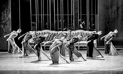 关于情节的重构。单纯讲故事,尤其情节过于复杂的故事不为舞蹈所擅长,反而在抒情、造境方面更有发挥余地。舞蹈是呈现在舞台时空的动作叙事,在叙事特点上与文学在时间中依次展开有所区别。因而,应当对文学作品中的情节结构、人物关系进行相应调整,寻找适合舞蹈语言特点和舞台呈现方式的改编思路。