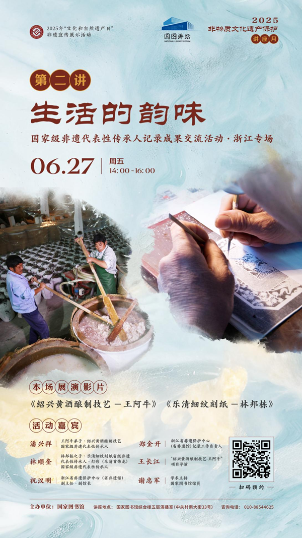 “生活的韵味”——国家图书馆举办2025年“非遗讲座月”浙江专场活动