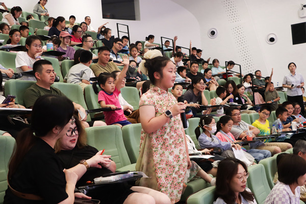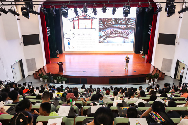“屋顶的大龙头是什么?”“斗拱是什么?”“古建筑屋顶为什么是曲线的?”互动环节,小读者们踊跃举手,天马行空的问答碰撞出思维的火花,杨大炜与大家面对面交流,解锁古建筑的“十万个为什么”。