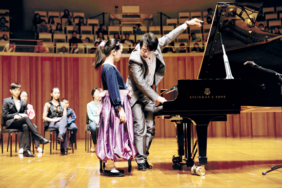 4月14日下午,国际钢琴大师郎朗以“国家大剧院古典音乐频道推广大使”身份,在国家大剧院音乐厅为1800位热爱音乐的孩子、老师和音乐爱好者上了一堂公益大师课。国家大剧院古典音乐频道对本次大师课进行了全程同步直播。在公益大师课现场,郎朗向琴童们表示,“你们在演奏的时候不要过于追求技术性,而是能融入更多的感情,要加入你自己的色彩。”