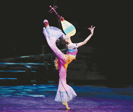 舞剧《马可·波罗》中,中国公主身披红纱走上和亲之路。