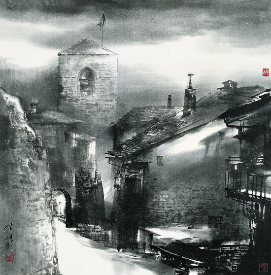 圣·莎费汉小镇之晨(中国画) 陈 辉