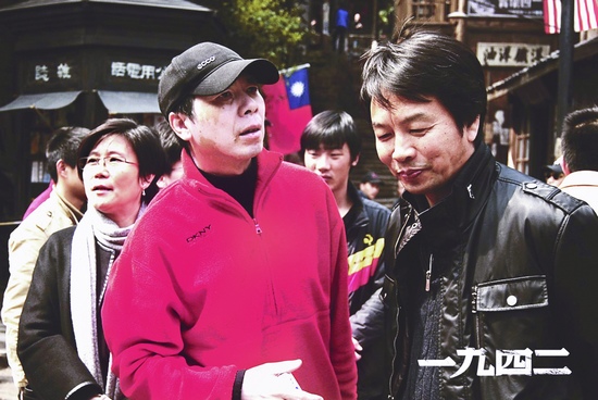 冯小刚与刘震云在拍摄现场