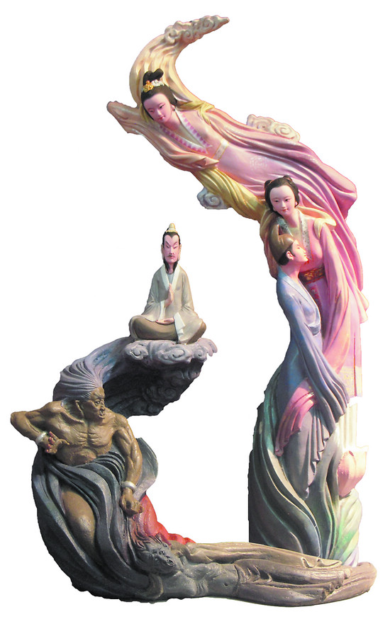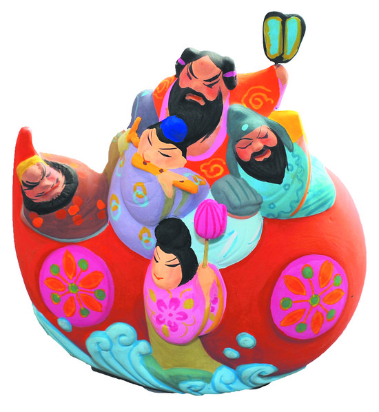 彩塑,又称泥塑,是我国具有鲜明民族特色的一个雕塑艺术门类,以其独有的造型语言、表现手法、传承模式与审美趣味,成为极其宝贵的民族艺术瑰宝。此次展览展示的彩塑作品,丰富多彩,风格迥异,充满着地域风格特色。其中“泥人张”彩塑生动而优美,洋溢着浓郁的生活气息;无锡惠山彩塑造型夸张,线条简拙,整体色彩强烈明快;广东大吴彩塑造型栩栩如生,色彩鲜艳典雅;陕西凤翔彩塑造型简单,色彩强烈;河南浚县的泥咕咕造型古朴,夸张别致,有着浓厚的民间特色;河北玉田的作品风格粗犷,表现出来自山野的质朴和率真;山西的彩塑以宗教题材为多,造型古朴生动,神态逼真。