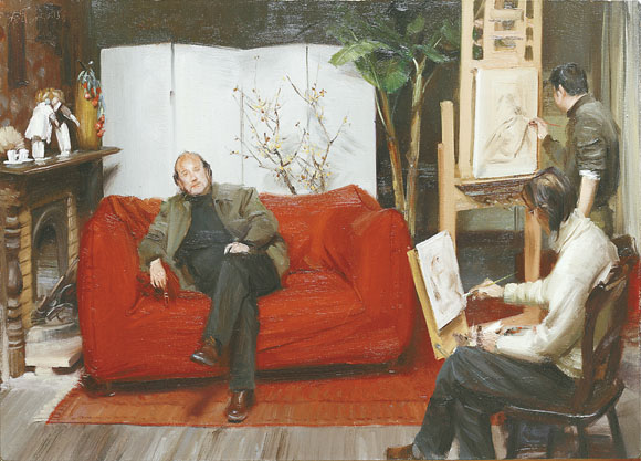 自从上世纪90年代开始,日复一日,冷军一直在从事超写实绘画的创作,一画就是几个月。“超写实绘画中的技法基本都是在一种重复‘制作’的过程中进行,慢慢地‘制作’久了,就会把绘画本身的画意在无意间丢掉了,这样很容易让人的绘画感觉变的迟钝。”因而他把在画室里画别人画画当成“换脑”的游戏,“这样的‘现场’写生,其高难度更能调动我的作画激情,保持感觉,为超写实绘画提供精神动力。”相比超写实油画创作的“磨洋工”,他将快速的写生视为“磨刀”。“这样高难度的写生可以调动作画激情,保持感觉,为超写实绘画提供精神动力。”冷军说。