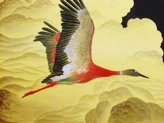 于是,维红借她所钟情的苍鹰、仙鹤们的展翅飞翔,寄予着她青春的理想高飞。1992年至2001年的维红反复执著地描绘着飞翔的主题,那时候的她正是在20多岁30出头那最为美丽的青春里!于是,这样的飞翔画题(还有她热爱的精美花卉主题)凸显的便是维红的理想,也凸显着维红的清纯、认真以及骄傲!这种骄傲不是恃才傲物,不是乡愿争胜,而是在她的花鸟图式里寄寓着画家生命精神的高蹈,她那旁若无人的沉浸,那“不全不粹不足以为美”的完美追求。