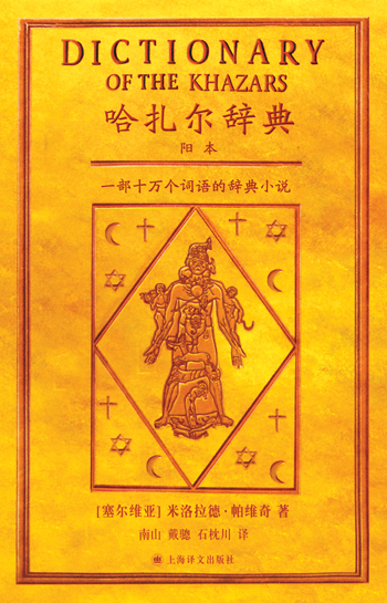 《哈扎尔辞典》还有一个神秘的元素,就是它拥有阴阳两个版本。那么何谓阴本,何谓阳本,两者区别何在?作者本人并未昭示。然而阴阳两种版本的差别只是中文译本中的11行(西文译本17行)文字,因此如果读者读毕阳本,那么伏于其间的阴本面目也大可了然于胸,反之亦然。至于十余行文字的不同带来的意义,还需读者自己寻觅和发现,识破阴阳版本之玄机。对此止庵表示,《哈扎尔辞典》采用辞典形式叙述,本身就可以从不同的角度解读作品,所谓阴本、阳本也是把这种方式推到极致,复杂化到书外。“帕维奇就是想把这样的意韵传递给读者:由于十余行文字的改变,两本书的意义完全改变”,张颐武如是说,而究竟改变在哪?他卖了个关子:还是让读者自己去发现吧,在阅读中体味其中的奥妙。