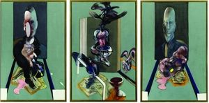 弗朗西斯·培根的《三联画》绘于1976年,作品以古代希腊神话为主题,由3幅巨幅画作组成,中间画面是一个没有头的人被三只秃鹫环绕,两侧画面分别为一名面容畸形的男子。这幅作品被专家评价为私人收藏家手中最重要的弗朗西斯·培根的代表作,也被评论界认为是弗朗西斯·培根最好的作品。