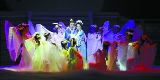 据悉,在该演出中,戴上3D眼镜的观众能身临其境地欣赏到仙境美景,牛郎与织女携手漫步天宫,漫天桃花仿佛就洒落在观众席间。以往很难在舞台上表现的神话场景,如老牛变人、天神从天而降押回织女等,如今都不再是难题。甚至,舞台上许多道具,诸如房屋、瀑布、草木等,也实现了3D化。