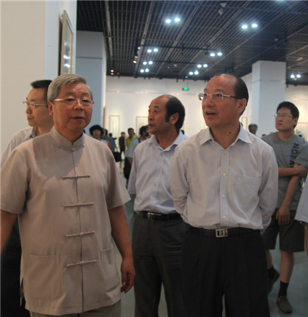 省政府副省长季缃绮,中国文联副主席、中国美协主席刘大为观看展览
