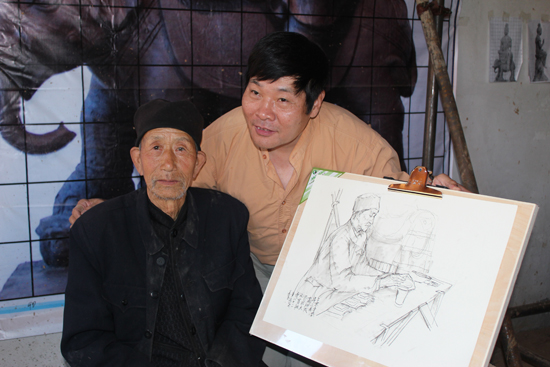 短短4天里,采风团成员累计创作人物素描80多幅,积累写生对象200多个。短短四天,有很多事情让艺术家们久久难忘:发生“天花板事故”的那家主人,嫌自己家原来的被子不好,加工加点赶制了两床新被褥;有个老乡拿着老父亲的身份证找到画家,说这是父亲留下的唯一照片,问能否为他的老父亲画张相;那个从苏成走出去,在改革开放最前沿深圳开创了自己事业又回报乡里的企业家,他年近90岁的老父亲依然待在村子里默默干着公益事业;还有一位91的老村长,在雕塑工地上不言不语,无私奉献着……简单的素描,只有黑白灰三色,但线条却是有温度的,因为线条背后的故事与情感。